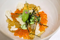 Tempura, vadouvan, sea grapes - the tempura (天ぷら) batter was a little thick and the flavors of the oyster were kinda obscured, but I did taste the vadouvan in the emulsion. Garnished with Japanese sea grapes (海葡萄).