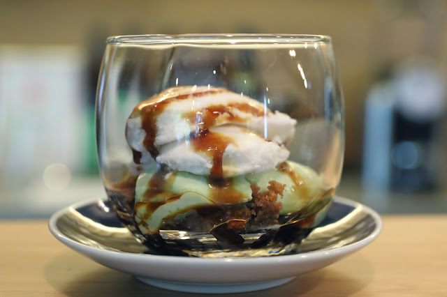 Chendol - with pandan-infused panna cotta, dairy-free coconut ice cream, and salted gula melaka. I love chendol, and I would have liked Willin's interpretation of it, too... if it weren't for the bits of digestive biscuits at the bottom. Willin had added so much butter to this that it really changed the flavor balance of the whole dessert, and honestly became a little too much to handle at the end of such a big meal.