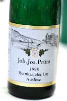 1998 Joh. Jos. Prüm Bernkasteler Lay Riesling Auslese - much more fragrant and complex, more evolved, with acetone, a little minerals. Pretty sweet but still good acidity on the finish.