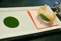 The langoustine underneath the thin, deep-fried wrapper was so, so succulent and delicious! One is almost tempted to enjoy it as is, with just the basil leaf providing some additional fragrance. The basil oil was incredibly intense, and should be used in moderation for fear of covering up the natural flavors of the langoustine.