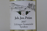 2007 Jos. Joh. Prüm Zeltinger Sonnenuhr Riesling Spätlese - nose of petrol and minerals. Pretty sweet on the palate, and showed some carbonation. I must have drunk about half a case of this wine with this family...