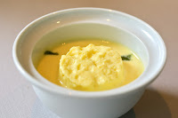 Sweet corn cold soup, shrimp consommé jelly, basil pesto - this was an extra course from the shorter, 3-course lunch set menu that Sato-san very kindly sent us. How incredibly delightful this was! The amazing, intensely rich and starchy sweetness of Japanese corn just perks me up... and the same botan shrimp (牡丹海老) consommé jelly from Sato-san's signature dish just added some beautiful umami to it all. Of course, the best thing about this dish was that this was chilled - perfect for a hot summer day. Inexplicably, it seems that the local clientele don't like the idea of cold soups... even in this weather. Takano-san told us that everyone else chooses the hot soup option on the lunch set menu.