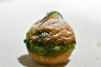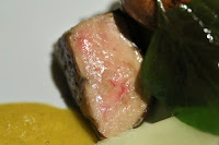 Filo stuffed with clam and cream - this was very creamy, with some dill in the mixture. The chopped clams inside provided a nice, springy texture in the midst of a creamy pile. I think we were told there was a little Crème de Menthe inside?