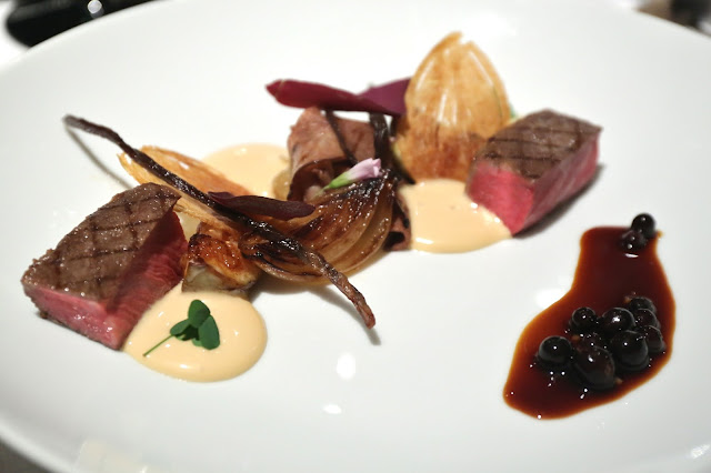 Wagyu flat iron, beef tongue, fig, onion, blackcurrant - Hello Kitty was kind enough to share a little bit of her main course with me. The beef (from Snake River Farms, I believe) was delicious as expected, and came with sautéed beef tongue that was smoky. Served with Shaoxing wine "purée" as well as caramelized onions, figs, and blackcurrant in beef jus on the side.