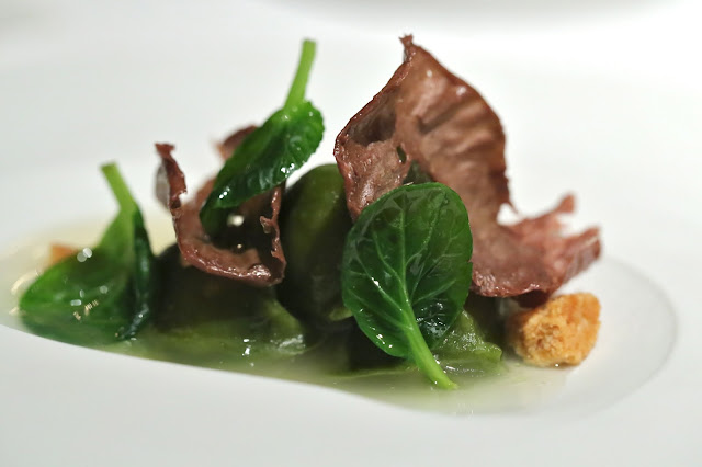 Mung bean, agnolotti, mugwort, lamb paper and broth - this was universally panned by the table. The creation looked interesting visually, but the ingredients didn't seem to gel together. There must have been a reason why the chef chose to assemble them in the same dish, and I guess none of us "got" what she was trying to deliver.