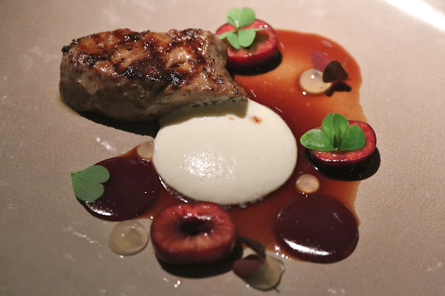 Smoked eel tart with grapes and horseradish gel - the eel was smoky and I loved the grapes. The sauce was sweet, too.