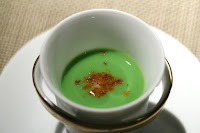 Sea urchin royale with green pea purée - with piment d'espelette on top, which was surprising in its kick.