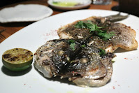 Sea bream, lemon, lime, Moroccan spices - that's a pretty big fish for the two of us, and you know what the most surprising thing was? No Fish ordered a whole fish! You don't see that happening everyday...