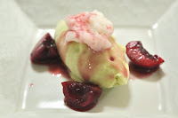 Black cherry, pistachio, sake (さくらんぼ ピスタチオ 日本酒) - I had conflicting feelings about the dessert. The pistachio ice cream was rich and dense, with loads of pistachio flavors. But the "topping" - made with the accompanying cloudy sake that had been frozen for a day - was rather bitter. I would have preferred to do without the frozen sake.