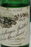 1970 Egon Müller Scharzhofberger Riesling Spätlese - white flowers, a little plastic, a little pear, petrol, flinty, sweet like marshmallow or marzipan. Good acidity here to balance out the sweetness on palate.
