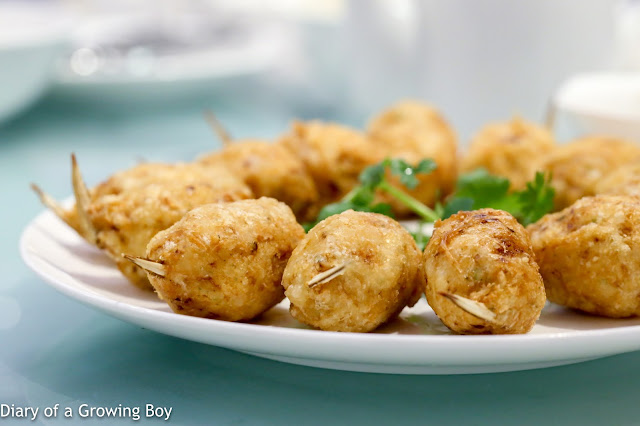 Deep-fried crab ball (百花釀蟹鉗) - well, these were actually NOT crab claws as the Chinese description indicated... What you see sticking out of the balls are actually the tips of crab legs.