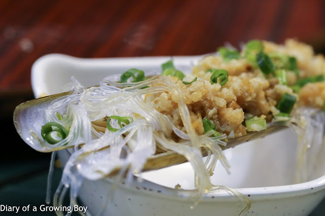 Steamed razor clams with minced garlic and glass vermicelli (蒜茸粉絲蒸聖子皇) - these were huge... no, YUGE!!! It's been a while since I last had the classic Cantonese preparation of steaming with tons of minced garlic, spring onions, and glass vermicelli, and this was soooo good!