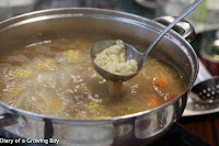 Then came a full-frontal assault of beef... all different cuts... and some which I had never even seen or heard of before. All in a pot with bone broth and sections of corn on the cob.
