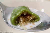 The pandan dumplings were stuffed with shredded coconut inside, which was very sweet thanks to the palm sugar. Yum.