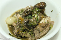 Coq au vin - Hello Kitty also prepared a huge cocotte of coq au vin with a French chapon, following an old recipe from Paul Bocuse. She wasn't happy with the end result as she found it to be overcooked.