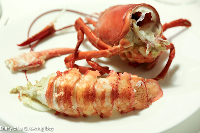As usual, we steamed the lobsters in a pot. These live and wild lobster are really special. They've got a wonderful firm texture when biting down, so you know these guys were lively. Really delicious, and I didn't need any seasoning or sauces whatsoever.