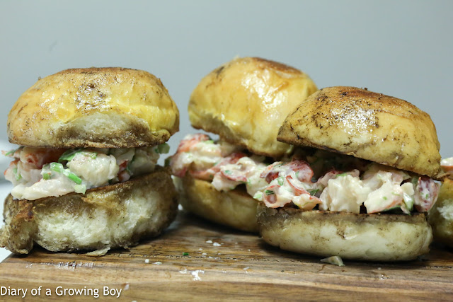 Hello Kitty also made a couple of them into lobster rolls, with the buns given to us by our lobster supplier that she baked herself. A little bit of celery, chives, and shavings from lime peel mixed with mayo. And of course the buns were toasted in a pan with plenty of butter. Mmm mmm good.