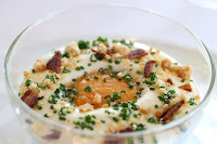 Slow cooked egg with potato smoothie Parmesan and onion from The Tasting Room, Macau - incredibly rich and sinful. Satisfying comfort food in a fine dining restaurant. Almost a meal in itself.