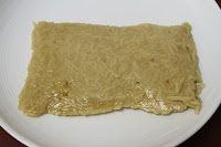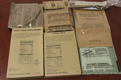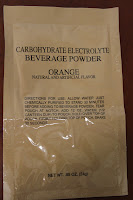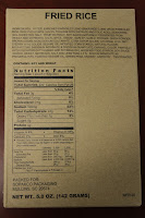 I think I made another mistake tonight in terms of serving... MREs are meant to be eaten in the field, straight from the pouches since they don't have plates. So the pouches are meant to be consumed individually, not necessary together as a "main" and a "side". Not having thought of that, I decided to break open the fried rice and lay it on the plate first... What came out was more like a rice "cake"... as the sauce had solidified and the damn thing hasn't been heated well-enough...