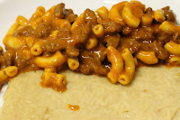 Next I opened up the chili and macaroni, and put it kinda half on top of the rice and half on the side. For some reason this reminded me of my first year in college in the States, when I first came into contact with American Chinese food. I was flabbergasted at my first encounter with "chicken chow mein"... where you have these short strands of noodles in chicken gravy being served over plain rice. WTF?! In Asia we either have noodles or we have rice... we don't have both of them together at the same time!