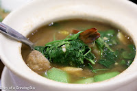 Thai peppery vegetable and prawn soup (แกงเลียงกุ้งสดพริกขี้หนูสวน) - reasonably spicy with lots of pepper, but thankfully not too sour.