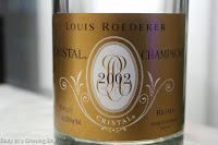 2002 Louis Roederer Cristal, en magnum - pretty toasty. Nice and ripe on the palate. Easy to drink.