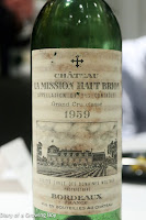 1959 La Mission Haut-Brion - very minty, smoky, a little earthy, and a little stinky... Very savory with lots of soy sauce. 94 points.