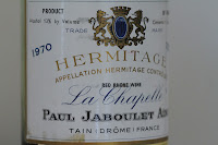 1970 Paul Jaboulet La Chapelle - very ripe nose, a little stewed prunes, savory like black olives and soy sauce. Served about 45 minutes after decanting.