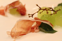 Grapes - they may look like grapes, but were actually chunks of ripe and sweet melon. Served with very thin slices of jamón ibérico, although I thought they looked and tasted like prosciutto…