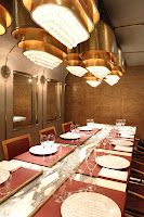 My first reaction when I walked into the new Krug Room was "HOLY BLING!" It's now meant to resemble a luxury railroad dining car, and in place of the roses in tubes above our heads we now have crystal chandeliers... BM jokingly said that the place now reminds him of my beloved Caprice, and I think he's got a point there...