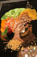 The tree trunk and branches is cauliflower and truffle purée; and the soil is made with bread crumbs and shredded black truffle. The "cherry" is actually a very smooth foie gras pâté encased in gelée. Another masterpiece from Uwe.