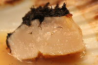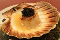 Scallop - French diver scallop, with chicken consommé and shredded truffle. As he has done in the past, Uwe poured sea water on dry ice so that we could smell the ocean.