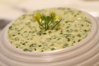 I can't quite remember which was which, so I'm gonna assume that the pumpkin purée at the top right corner - garnished with poppy seeds - is Spring. The pea mash garnished with mint leaves is Summer. The bell pepper purée at bottom left is Fall; and the empty branches garnished with caviar has got to be Winter.