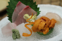 We had some sashimi to start us off. I told the chef that I didn't want any tuna, so I got a few other things: