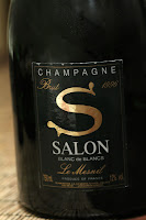 1996 Salon - I was pretty skeptical about drinking this tonight, since every other time I've tasted this wine before I ended up thinking the wine was too young and not ready. The Specialist wanted to try regardless, and as it turns out the wine has mellowed a little. Still very young and fresh, with a heady mousse and a little bit of toast.