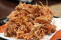 Soon after we found ourselves facing a small hill of deep-fried prawn heads. Not exactly what I needed tonight, and certainly not in this quantity! Given that one of us is allergic to prawns and another isn't as hungry as she usually is, guess who ended up consuming the bulk of this? As someone commented online, it looks like we slaughtered "a whole village"…