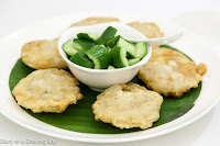 Deep-fried pork fat stuffed with prawn (金錢蝦餅) - the chiffonade of kaffir lime leaves gave off a lovely fragrance to go with the prawns wrapped inside deep-fried caul fat. I also liked the pickled cucumbers.