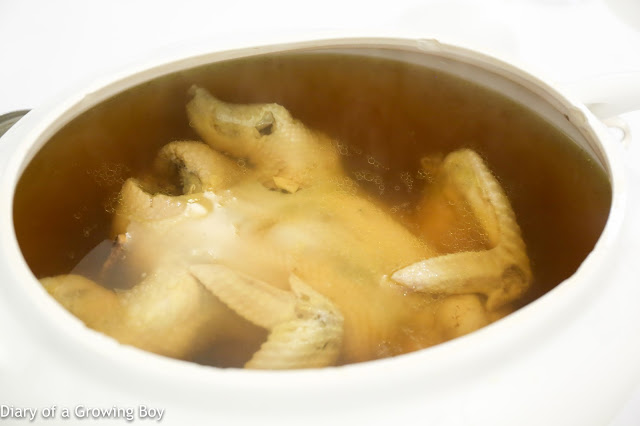 Slow-cooked chicken wrapped pigeon with Shaoxing wine (狀元紅燉鳳吞雞) - lots of flavors in the soup thanks to the large variety of herbs used, but having flavors doesn't necessarily mean lots of salt. Delicious.