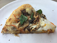 Underneath the thin shreds of nori (海苔), we've got chunks of squid, octopus, as well as mentaiko (明太子) sauce on the pizza dough. Very tasty, and I liked the spicy kick from the mentaiko. But I also tasted a little hint of bitterness on the finish.