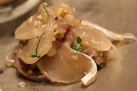 Marinated horse mackerel (鯵たたき) - with chiffonade of perilla leaves (紫蘇), sesame and marinated in vinegar. A welcome change to the usual versions I see around town.