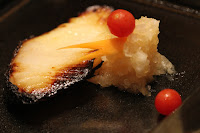 Miso black cod (銀鱈 西京焼き) - a dish that I only order from a couple of places these days. This was a pretty thin slice, but done oh-so-well. The edges are deliciously charred and crispy. I was relishing the sensation of crunchy bits between my teeth. Nicely paired with chopped radish and tiny bead-like tomatoes.