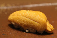 Northern sea urchin (北紫雲丹) - this, boys and girls, was the pièce de résistance - the item I was invited to come taste. This sea urchin from Hokkaido's Yagishiri Island (焼尻島) is pale in color, which earned its nickname of white sea urchin (白雲丹). Absolutely delicious. Fatty, plump and delicate. Thank you, ma'am, may I have another?