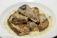Whereas The Hungry Tourist had just been nibbling and tasting the two dishes we've had so far, this is where he stepped up. This is the perfect season for fourfinger threadfin (馬友), and I already had a taste of it from The Man in White T-shirt last night as he tried to cook a "Chinese" version. Tonight's preparation was completely different. This was confit in Chinese yellow wine which, along with the fattiness of the fish itself, helped deliver an amazing tender texture. The dish also came with the chef's trademark touch of acidity, and when combined with the presence of shredded Napa cabbage alongside chunk of potatoes - began to remind me of choucroute.