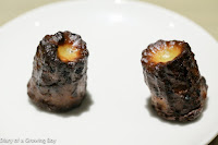 Canelés - normally I find some of my favorite canelés in town here, but I have no idea what happened today... The cooking temperature seemed all wrong as these babies were obviously deformed and ugly as sin. Cat anus for sure... Having said that, though, the texture was pretty perfect - crunchy exterior with a nice and wet, spongy interior.