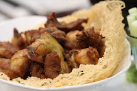 Deep-fried chicken pieces with homemade shrimps sauce (大澳蝦膏炸碎雞) - the gang had raved about this dish from their last meal, and it was definitely pretty kick-ass. I was only gonna allow myself one piece of the chicken, since it was deep-fried with skin and all... but the piece that Susan picked for me was actually the ass... so I allowed myself to pick a second piece. VERY yum, thanks to the shrimp paste.
