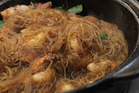 Baked prawns with vermicelli and homemade sauce in casserole (奇香粉絲蝦煲) - they didn't have any crabs at lunch today, so prawns were substituted. This was a shame, because I really didn't like the taste of the prawns. There was something very off about the taste that I just couldn't pin down... I wanted to say that I tasted chemical, but I wasn't sure whether it was some type of spice that I just didn't care for. Anyway... I tried two of the prawns and the second one was only marginally better than the first. The vermicelli, though, was delicious as I had expected.