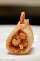 Deep-fried glutinous dumplings filled with roasted pork belly and dried shrimps in calabash shape (像形葫蘆菓) - I love 咸水角, and here they've made it into this incredibly cute shape. Yum!