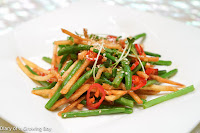 Sauteed French bean with crispy potato in chili sauce (香辣脆薯法邊豆) - I jokingly called this "French beans with French fries", but that's exactly what this was! The fries were very crunchy, and had been dressed in a spicy vinaigrette.