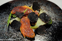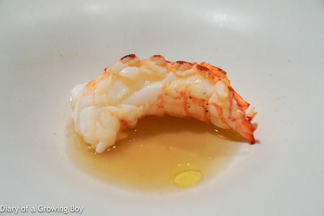 Japanese langoustine with pork tail, Yunnan ham, langoustine broth - this was introduced as a very "simple" dish... and indeed the presentation looked very minimalist and simple. But I have learned over the years that "simplicity is not simple".